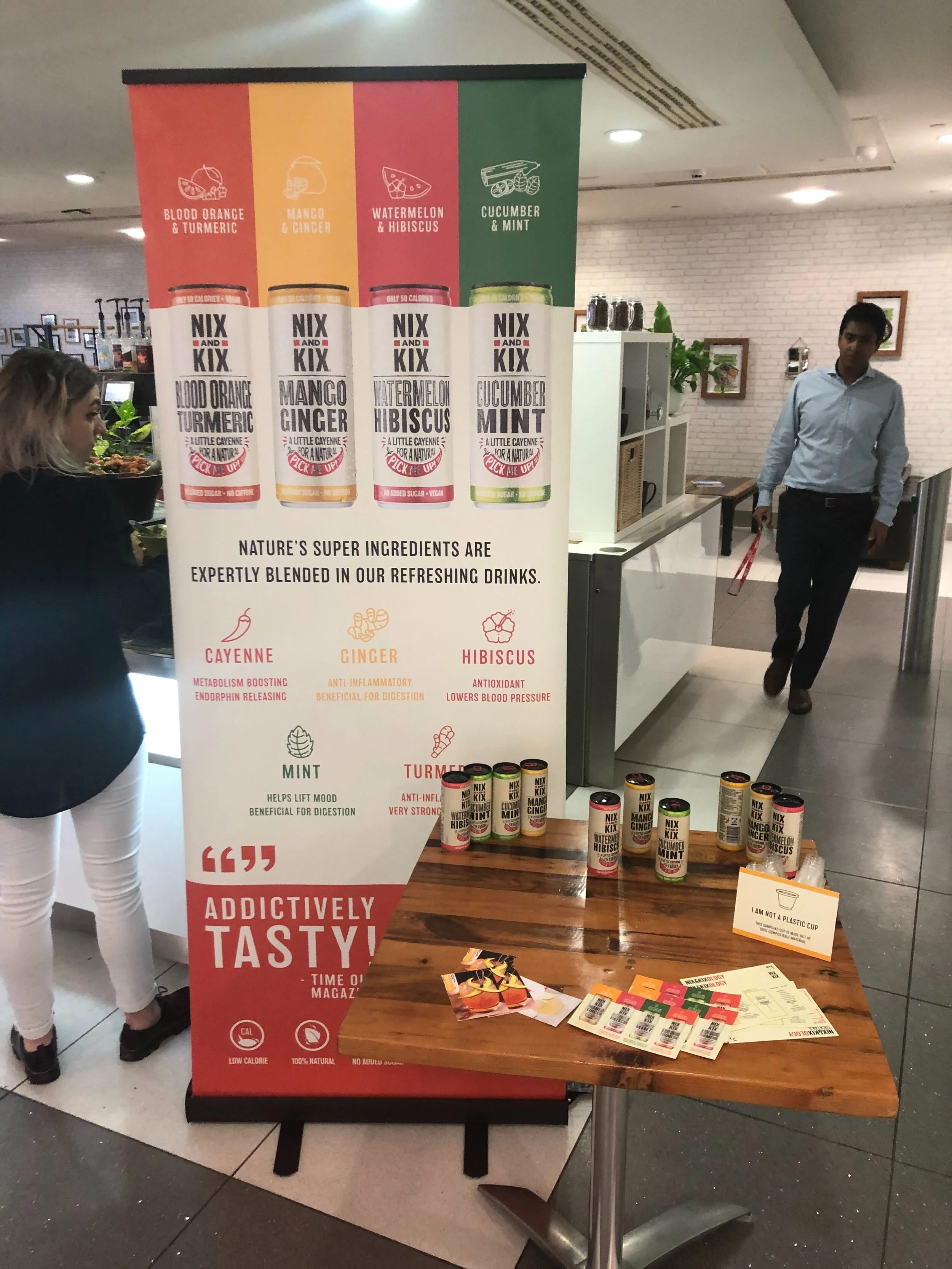 Point of sale and promotional design work for Nix & Kix soft drinks made with existing can branding.